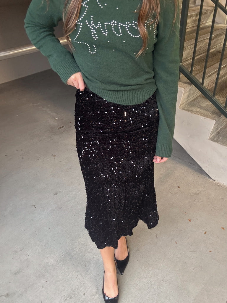 Soft Sequin Midi Skirt - Black