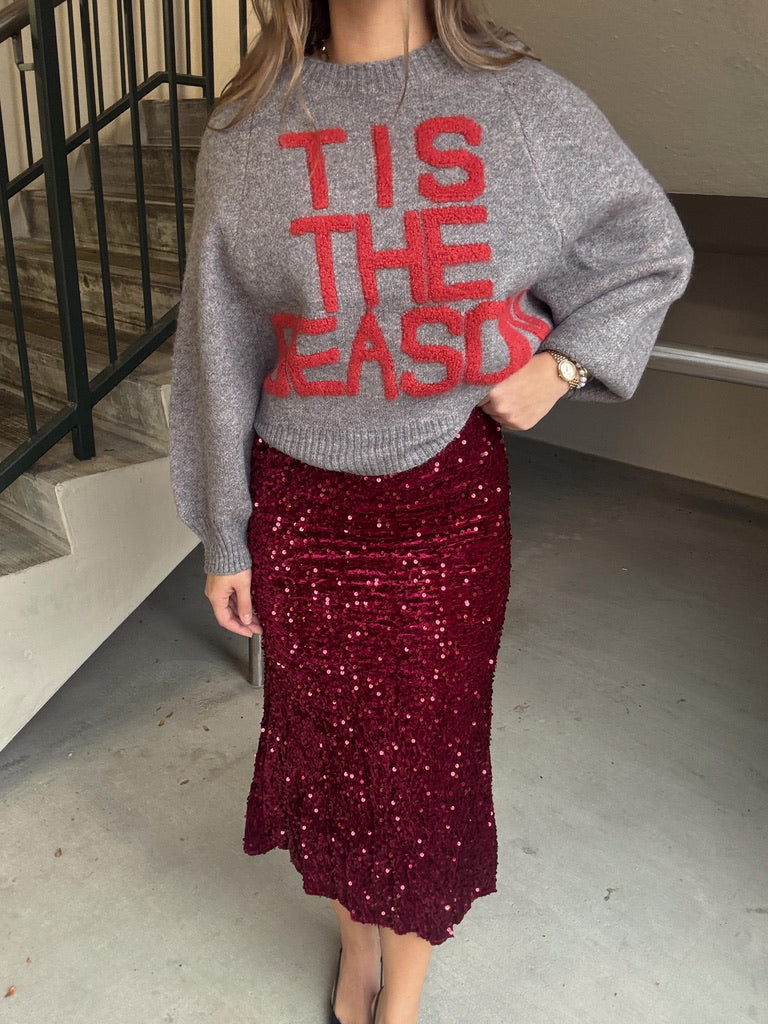 Soft Sequin Midi Skirt - Gray