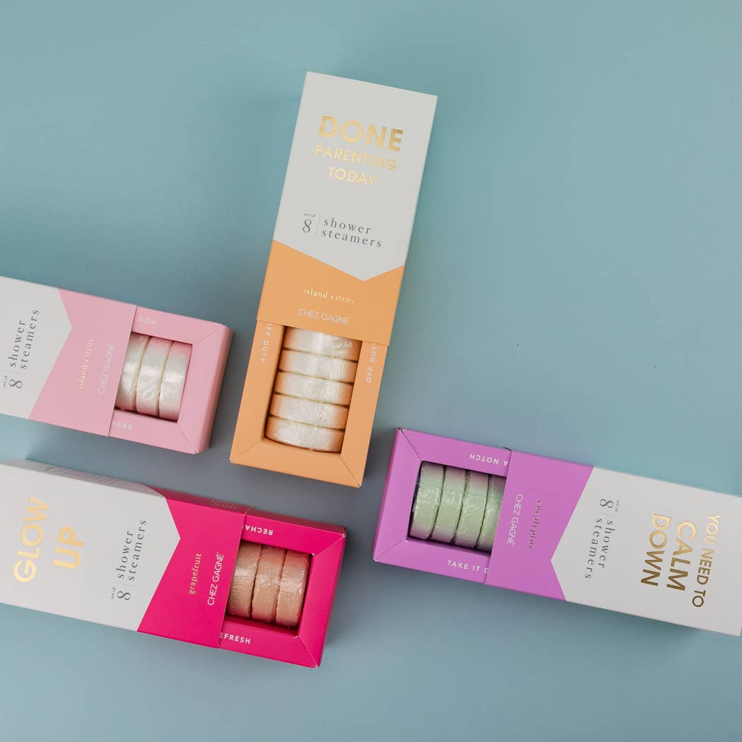 Take a deep breath and let it all go. Our You Need To Calm Down Eucalyptus Aromatherapy Shower Steamers are infused with essential oils to bring clarity, calm, and a refreshing reset to your day. Perfect for everyday self-care or thoughtful gifting, these vegan, cruelty-free steamers transform an ordinary shower into a spa-worthy ritual - no bathtub required. Made with clean ingredients in sunny California and packaged in a chic, gift-ready box, they’re a customer favorite for wellness shops, spa retail, and modern gifting. At under $30 for 8 steamers, it’s like gifting eight mini spa sessions for less than the cost of one facial.